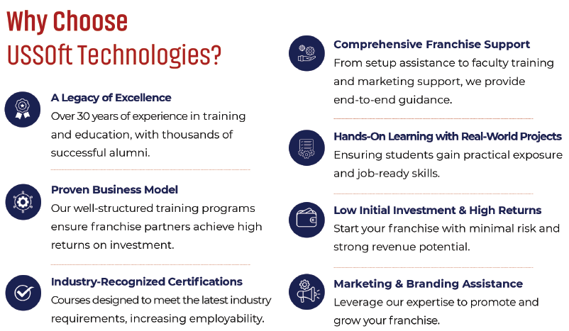 USSOft Technologies, the IT and software training division of Cadpoint Engineering Services, has been a leader in technical education since 1993. With a strong legacy spanning over 30 years, we have empowered thousands of students and professionals with industry-relevant skills, bridging the gap between education and employment. Our comprehensive training programs, expert-led instruction, and commitment to innovation make us a trusted name in IT education.